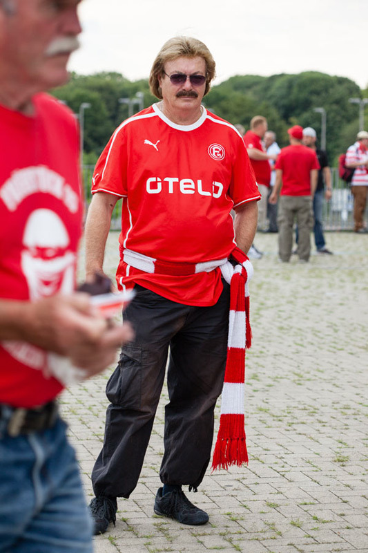 Anhänger von Fortuna Düsseldorf vor der Esprit Arena für FußballFanFotos.